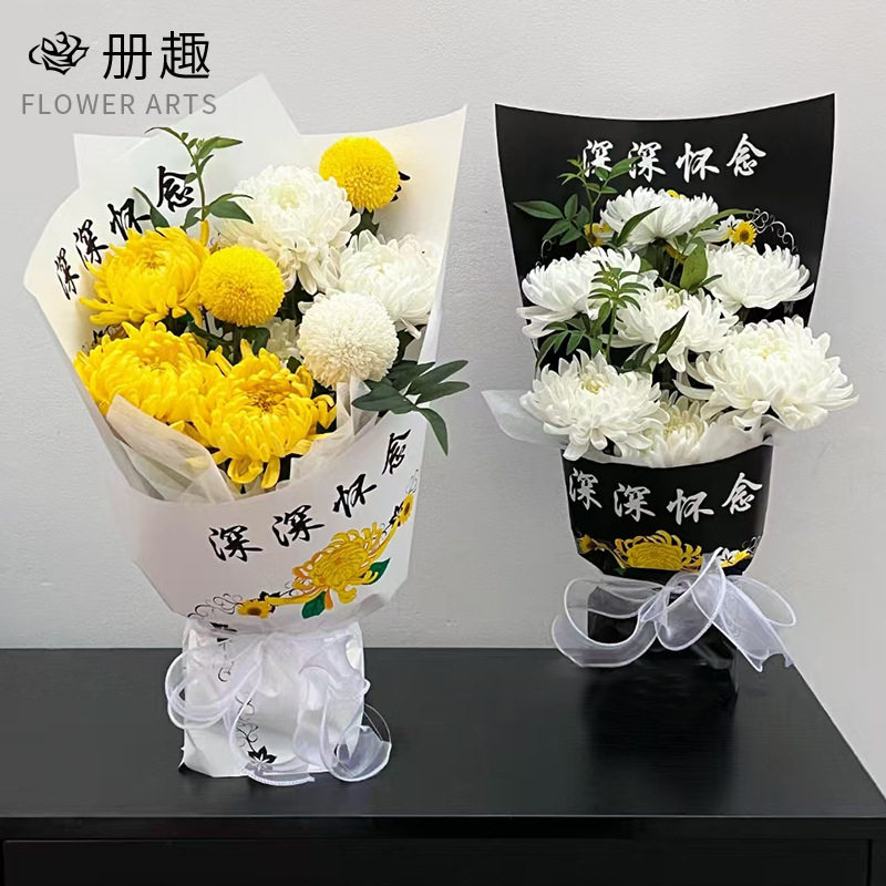 清明节新款怀念菊花鲜花包装纸防水膜花束包花纸祭祀扫墓用品材料