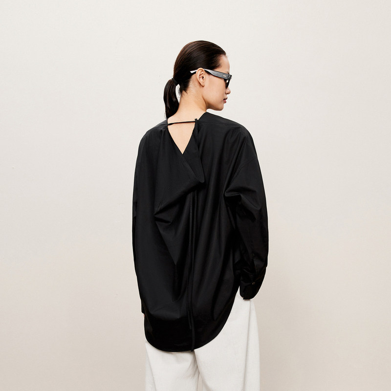 LESS秋棉质简约设计感衬衣时尚圆领长袖套头衬衫女2O7210420