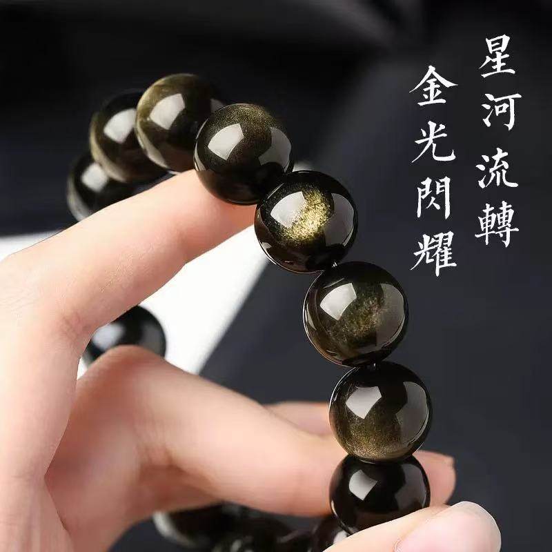 天然黑曜石金曜石手串配珠女生手链情侣本命年转运珠礼物男款佛珠
