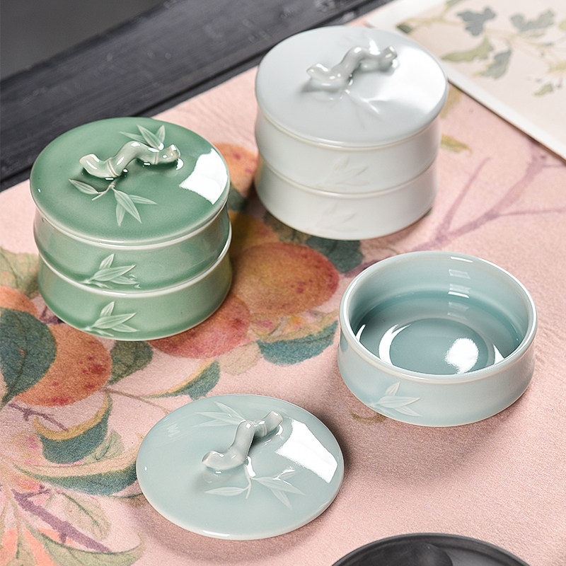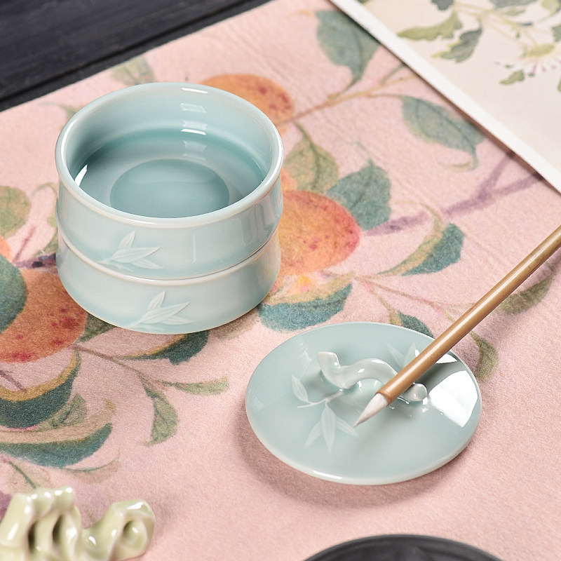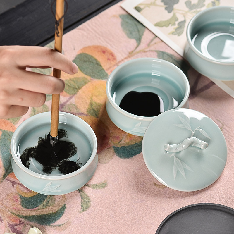 创意文房四宝中国风瓷陶砚台墨碟学生书法绘画用盛墨汁用墨盒带盖