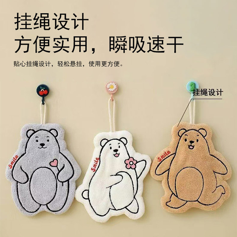如奕卡通擦手巾挂式毛巾可爱珊瑚绒吸水速干不易掉毛宝宝手巾手帕