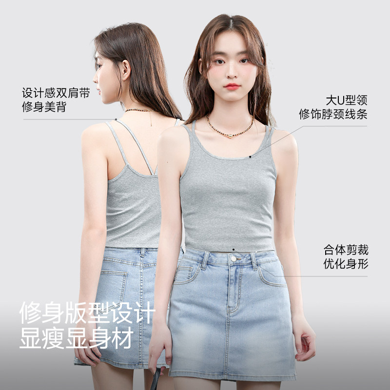 螺纹莫代尔吊带背心女夏无袖内搭打底衫防走光遮副乳针织上衣外穿