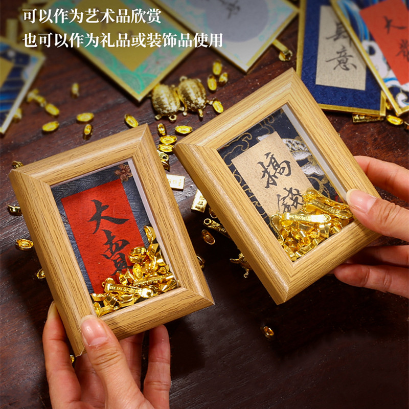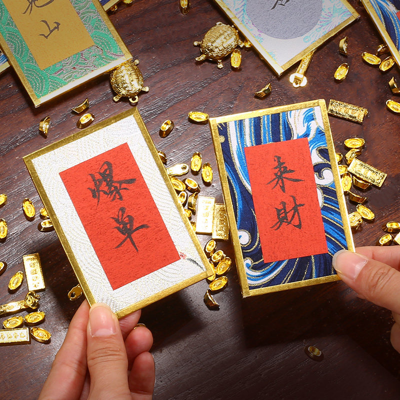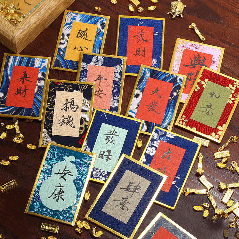 宛陵小号迷你宋锦硬卡纸书法摆台相框摆件空白手写diy书法文创材料宋锦车载挂件卡片彩色蜡染宣纸楮笺熟宣