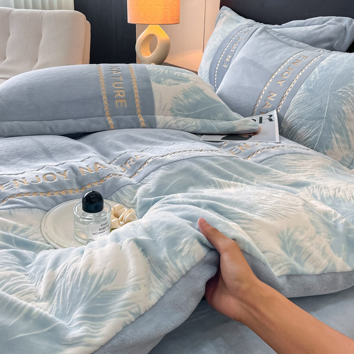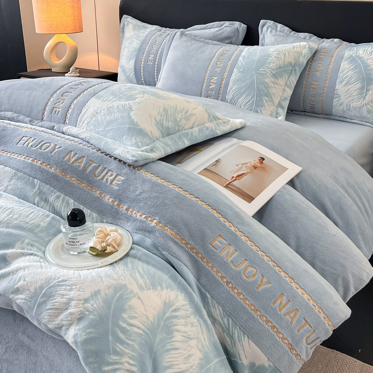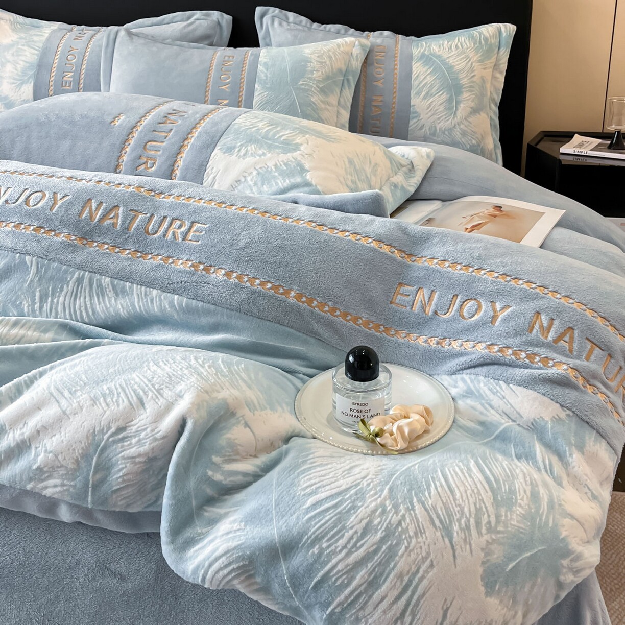 A类加厚牛奶绒雕花刺绣四件套烂花床品套件冬季加厚保暖被套冬天