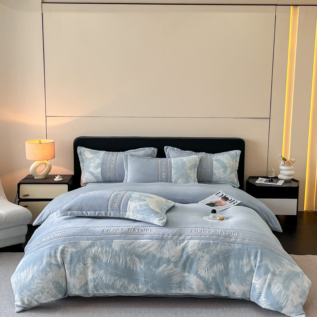 无印良品高级感床上四件套全棉纯棉双人被套床单笠轻奢床品三件套