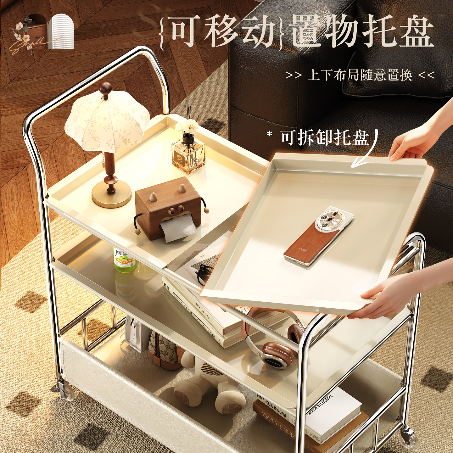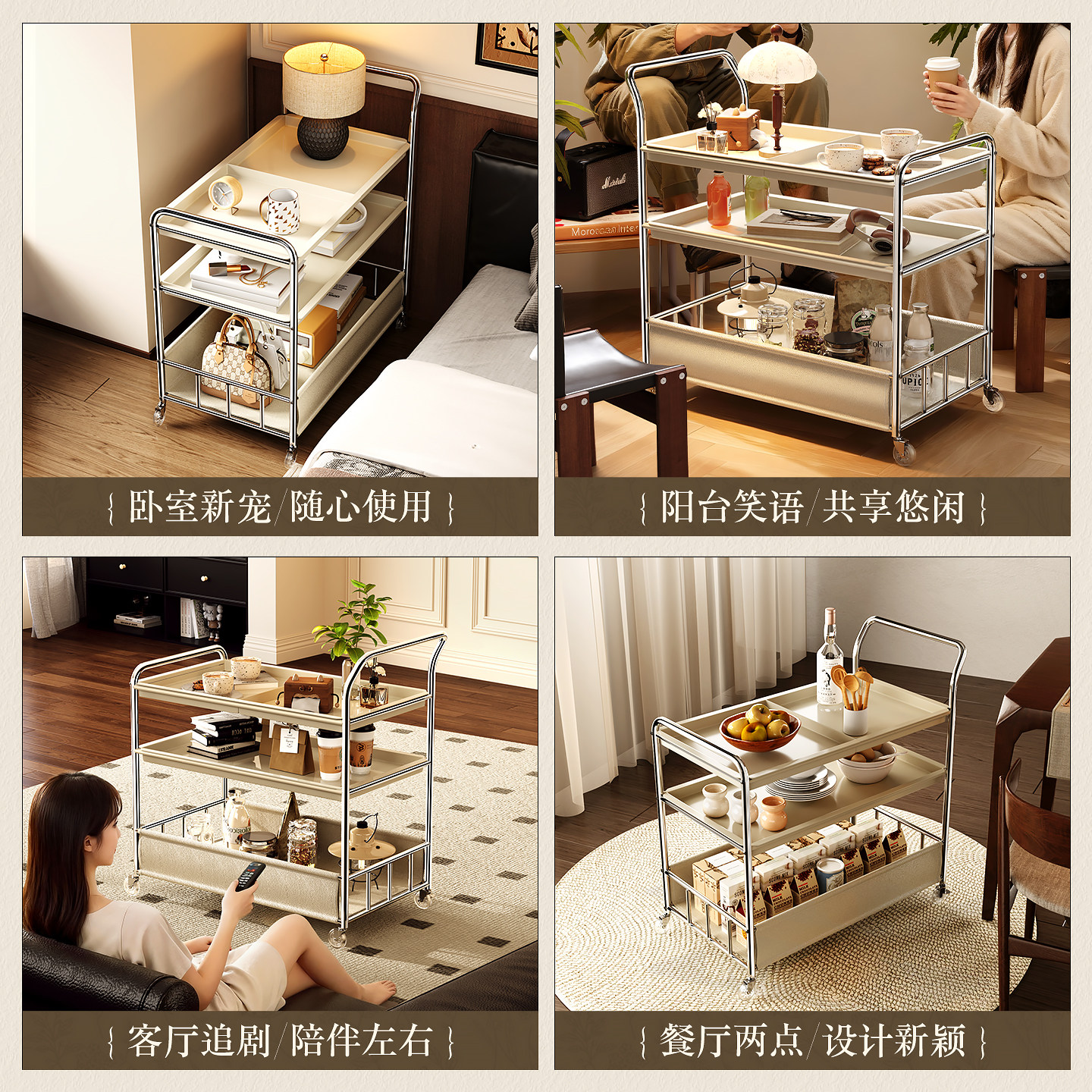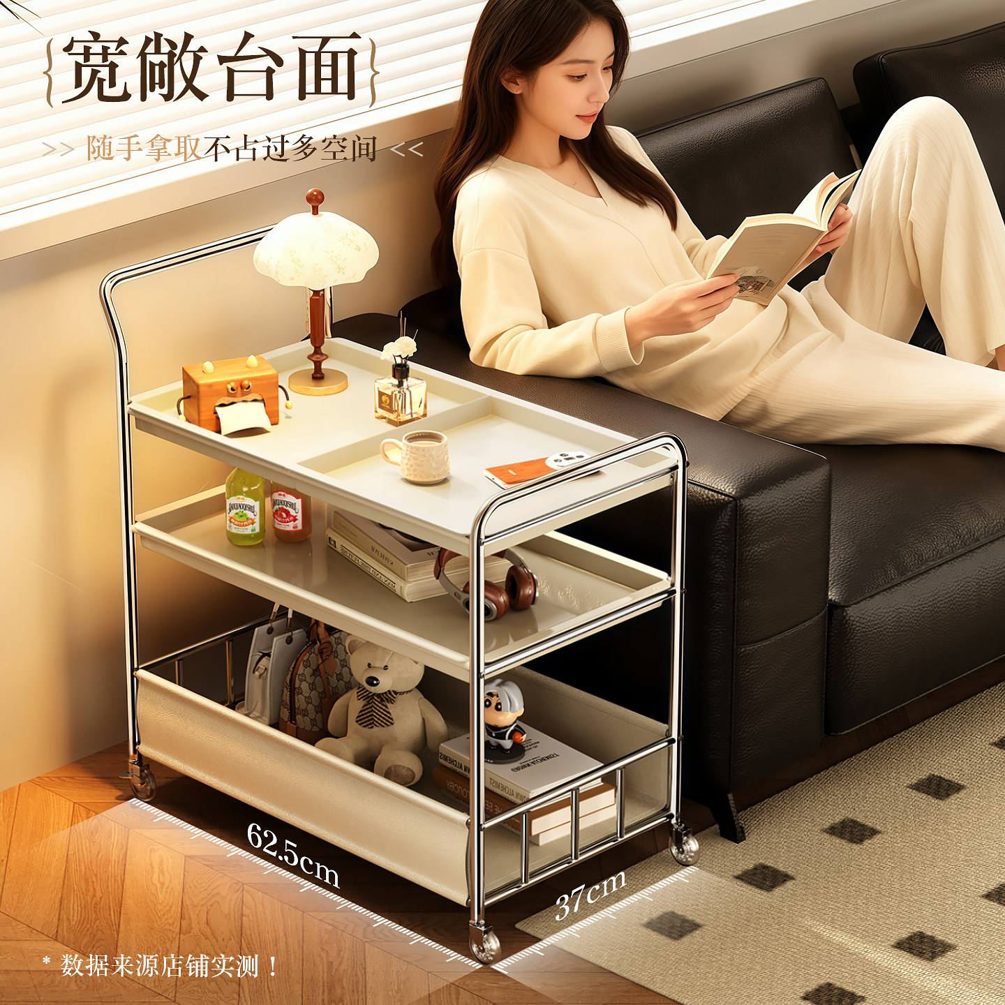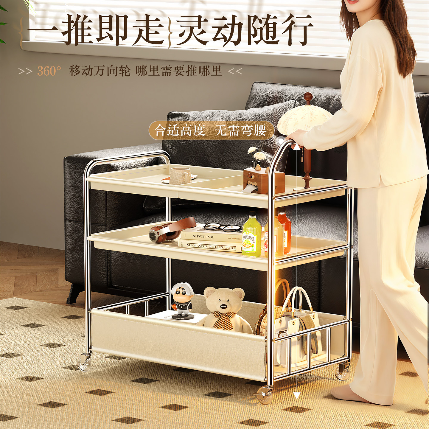 厨房置物架可移动小推车收纳置物架客厅沙发边几茶几零食储物架子