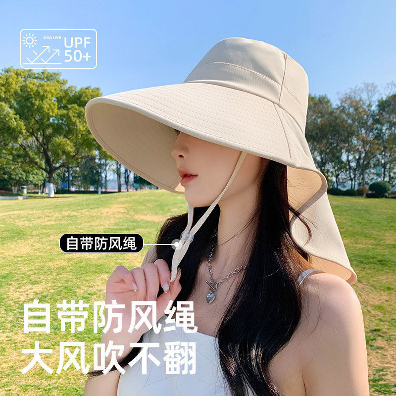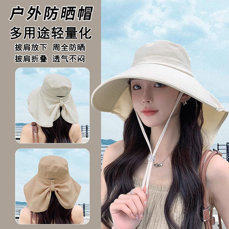 大帽檐遮阳帽太阳帽女2026新款夏季防紫外线护脖颈渔夫帽防晒帽子