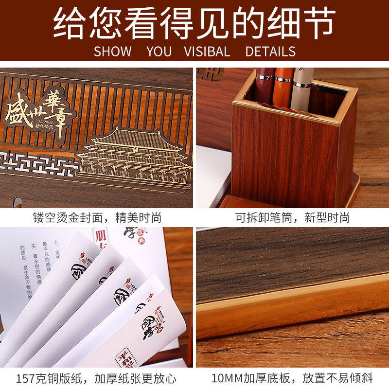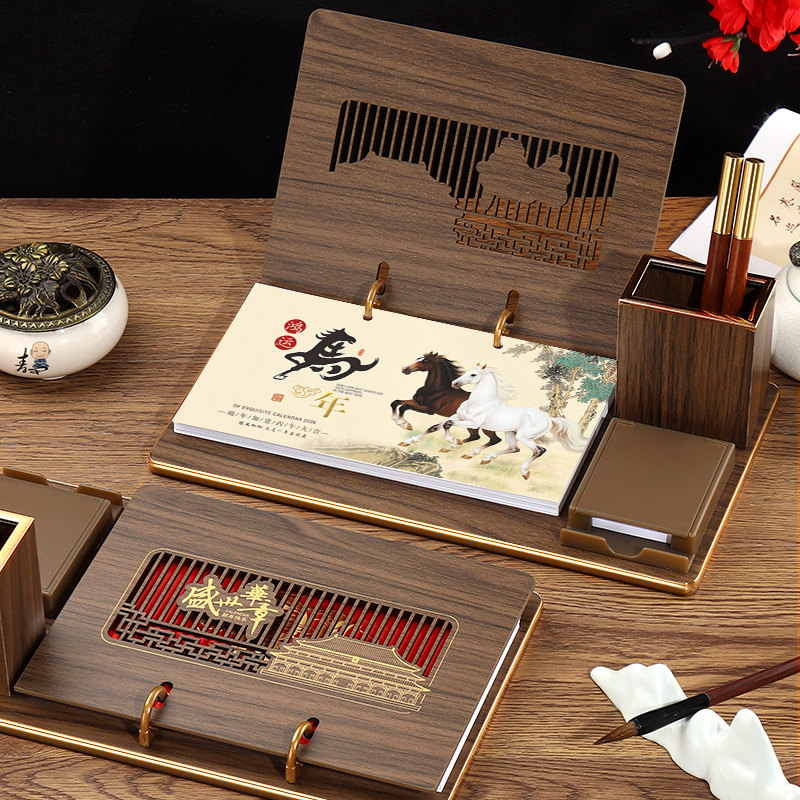 周历式台历2026年新款定制创意桌面木质带笔筒年历摆件商务办公公司马年记事日历印刷礼品订制定做新年伴手礼