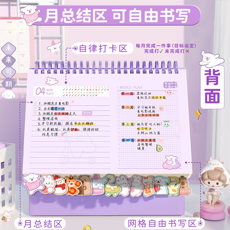 2026年新款台历创意卡通日历全年马年迷你小台历桌面摆件办公室学生每日计划表工作自律打卡记事mini计划月历