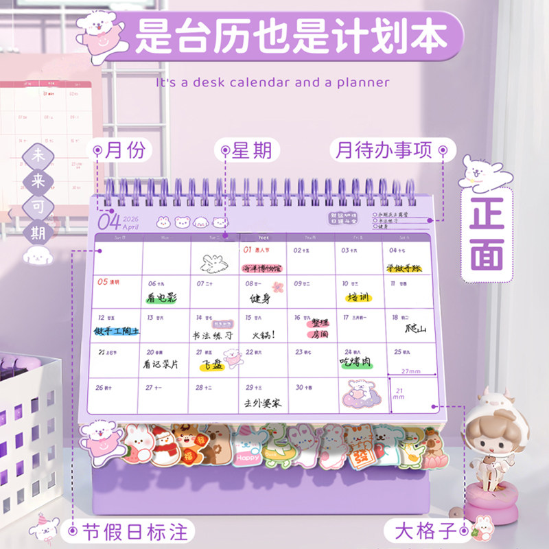 2026年新款台历日历摆件可爱卡通异形学生迷你文艺台历本25年可定制商务办公全年月历桌面创意记事本计划打卡