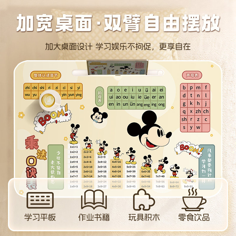 拼音乘法表儿童口算学习桌可折叠小学生书桌移动餐桌床上折叠桌可爱卡通加厚作业桌笔记本电脑支架桌小桌子