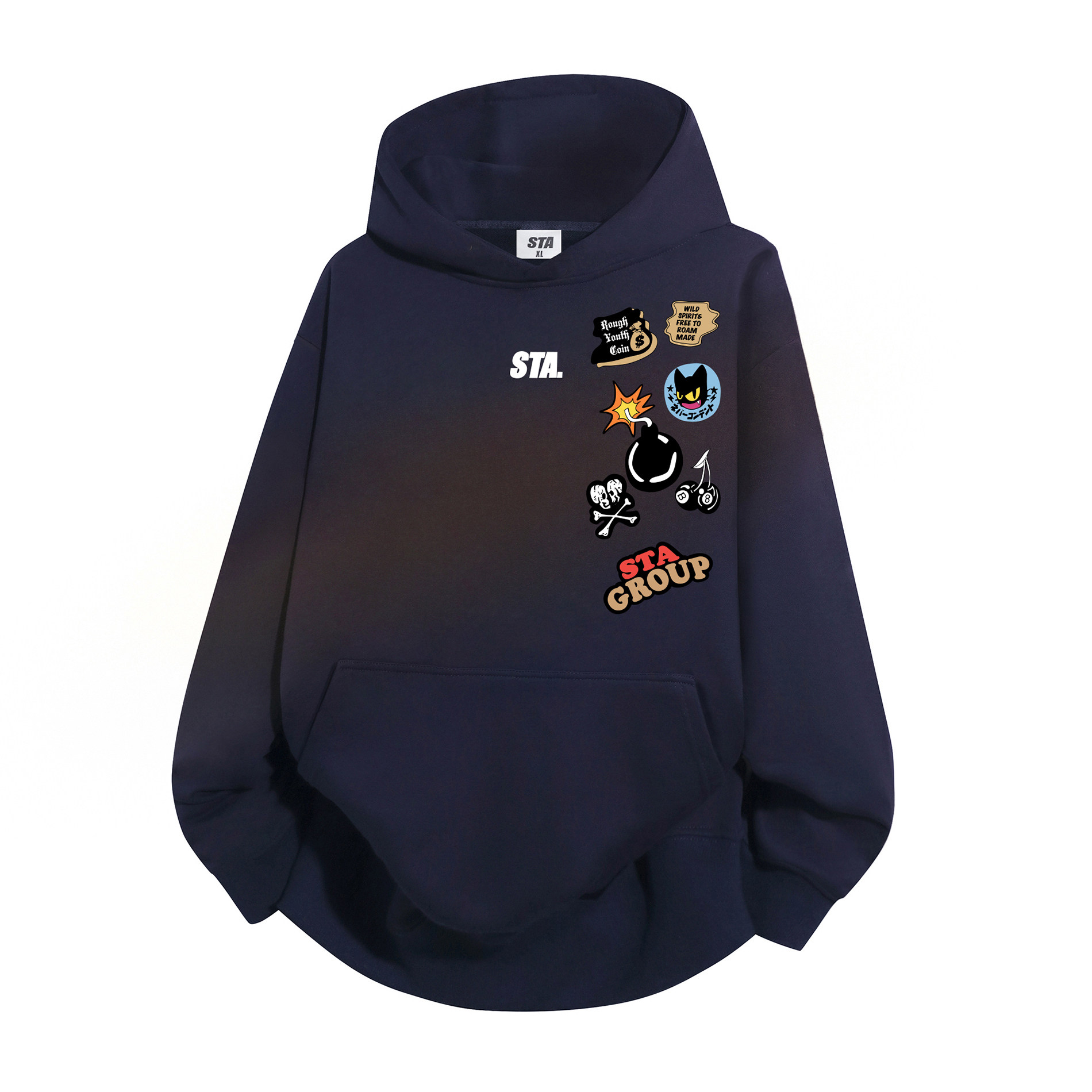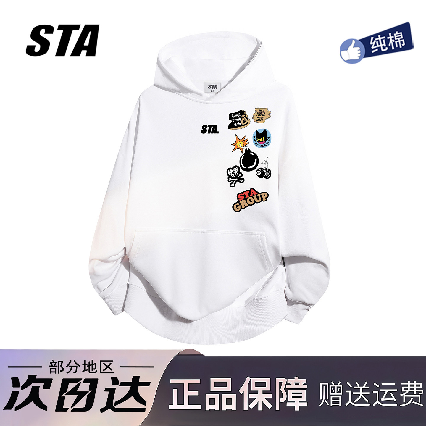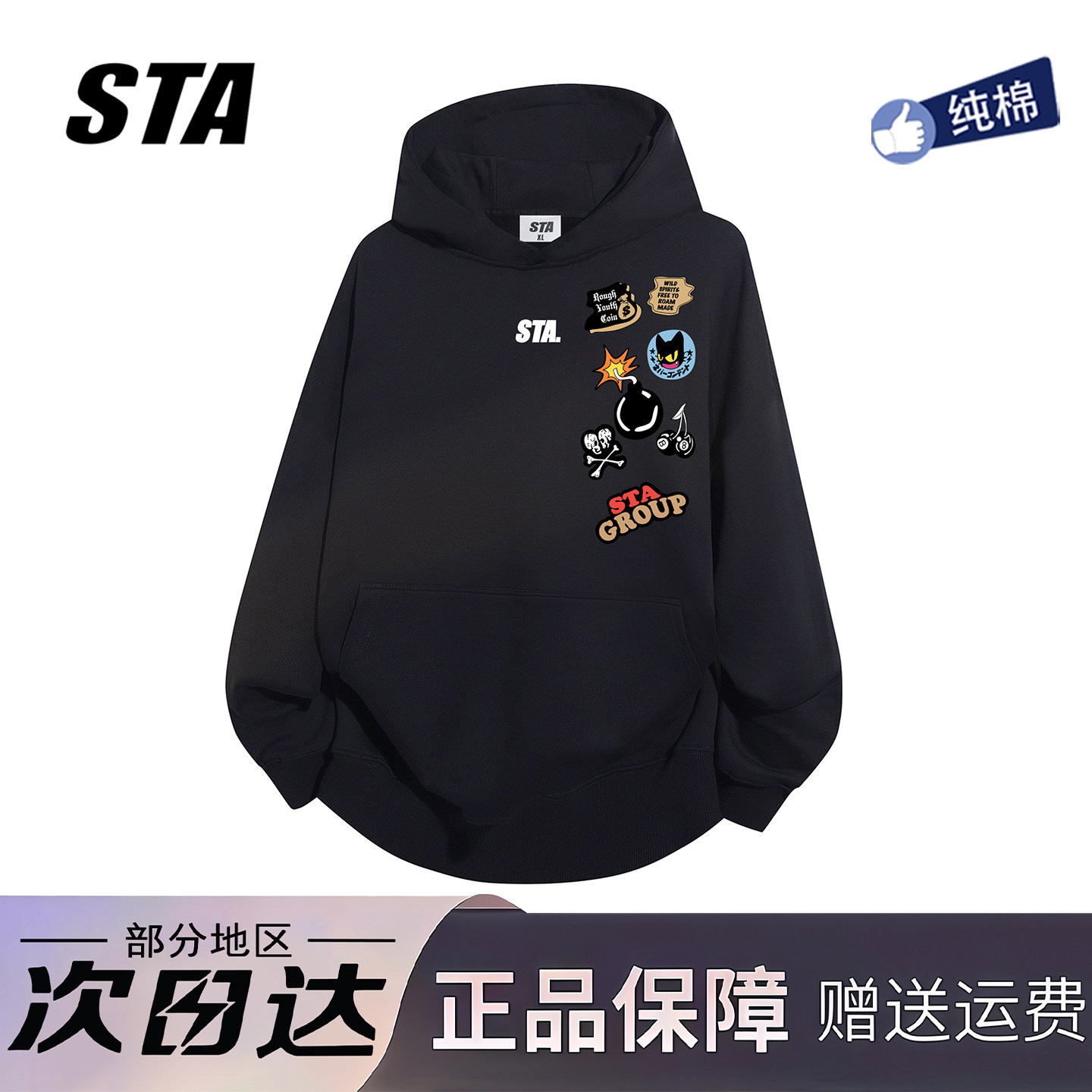 STA旗舰店美式涂鸦印花连帽卫衣男女秋冬季潮牌高街加绒黑色外套