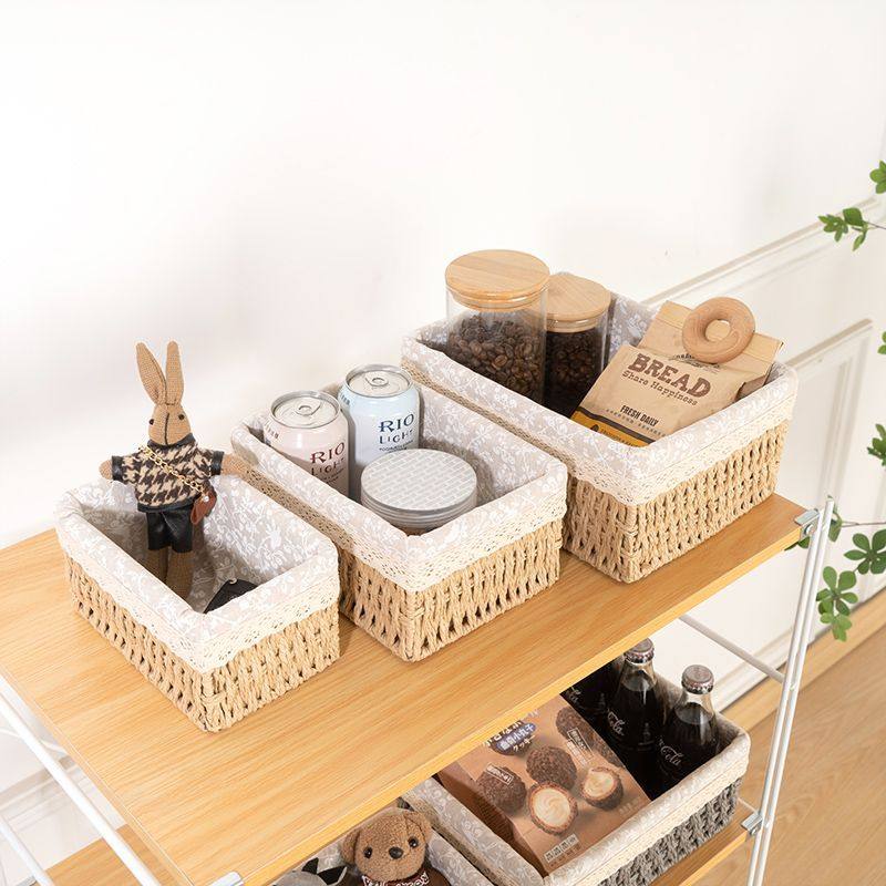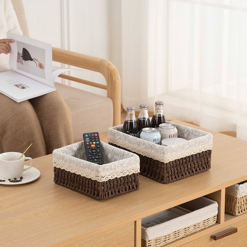 家用仿藤编收纳盒化妆品茶几杂物玩具玄关零食钥匙客厅草编篮