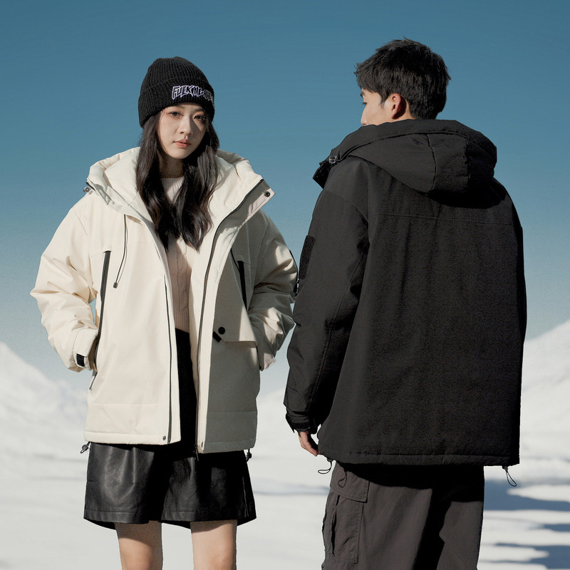 雪中飞2025冬新款男女情侣短款羽绒服工装宽松显瘦潮酷时尚加厚