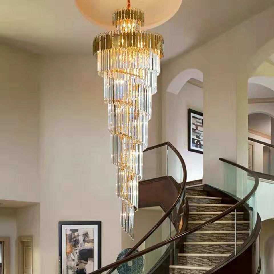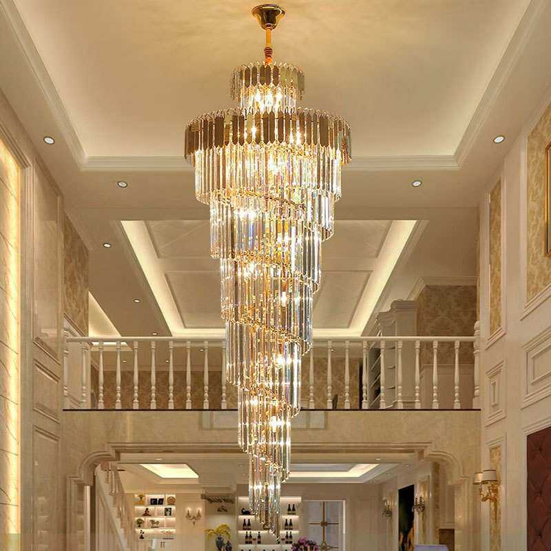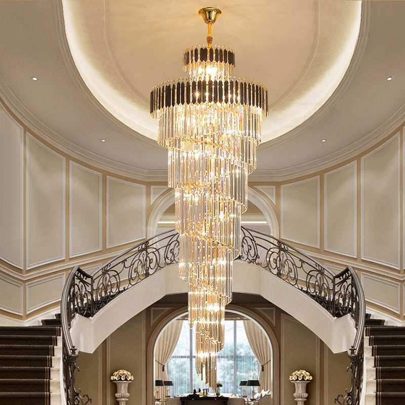 欧式水晶大吊灯黄金色大气客厅灯现代简约复式楼中空楼梯转角吊灯