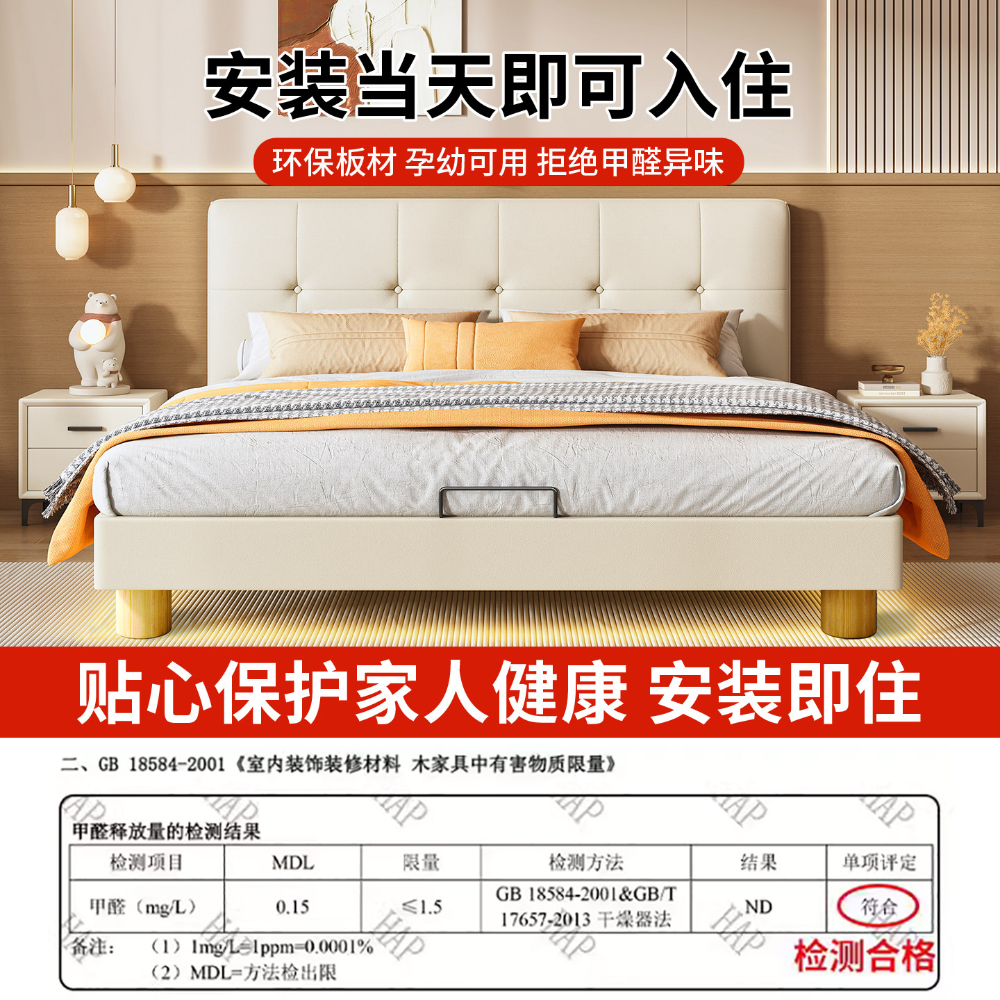 奶油风纯实木薄床头床燕尾榫加宽加厚静音双人主卧床架可定制尺寸