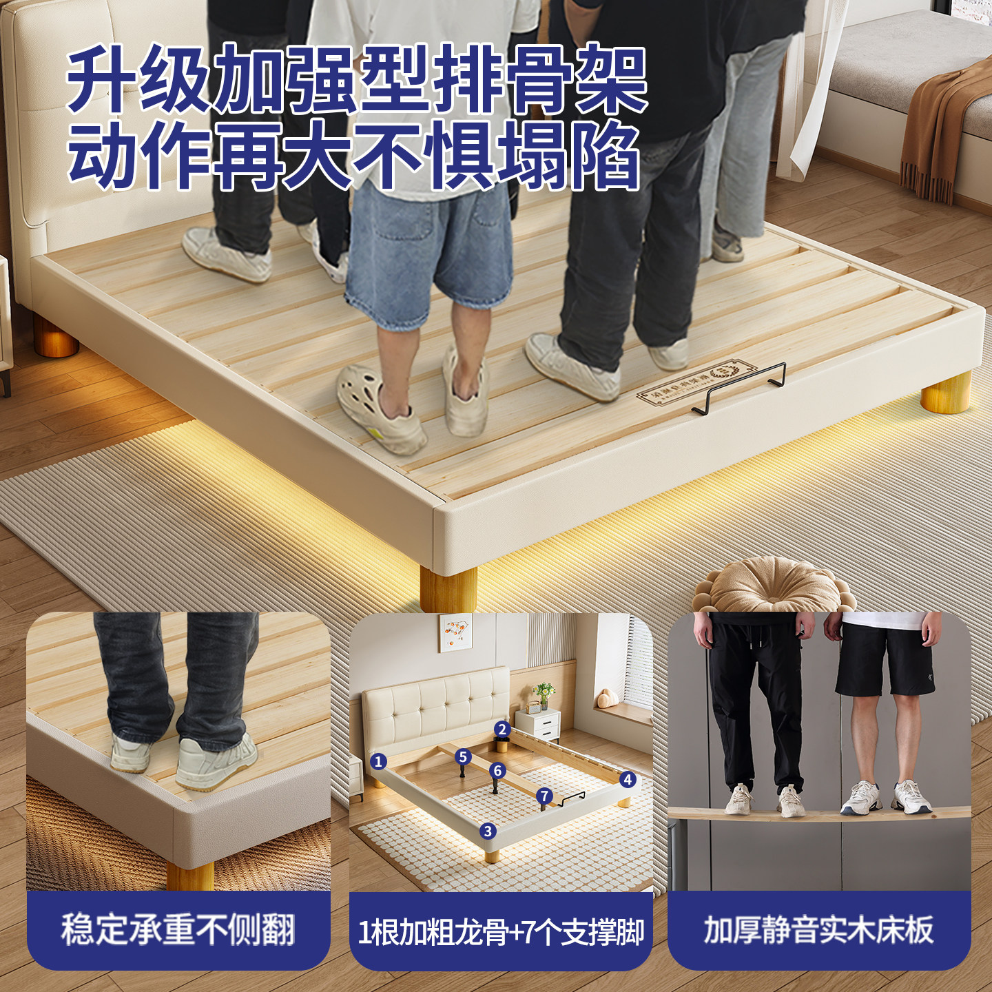 全实木无床头床架榫卯静音悬浮床小户型齐边排骨架床架可定制尺寸