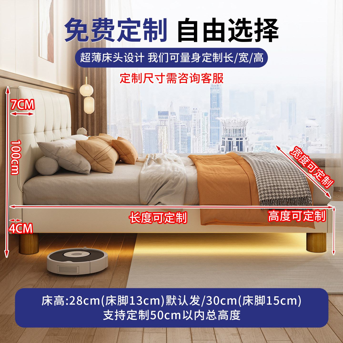 全实木齐边薄床头床小户型1.5m现代简约卧室双人床可定制任意尺寸