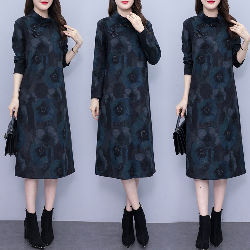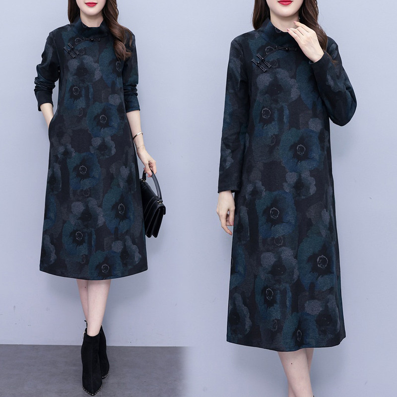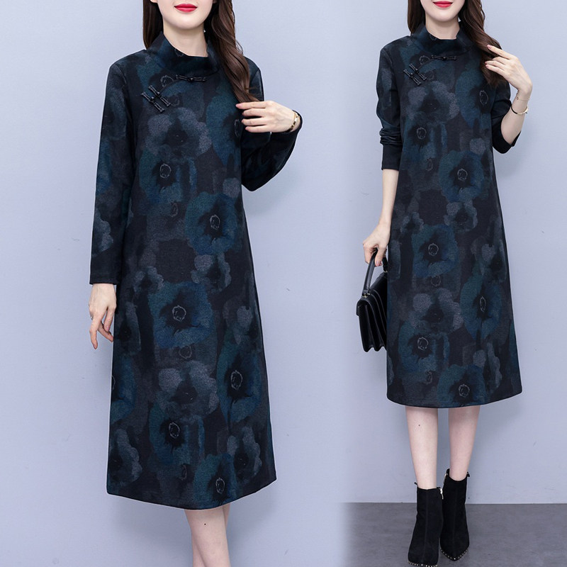 改良旗袍2025年新款女正式场合连衣裙妈妈冬季大码毛呢高档长袖裙