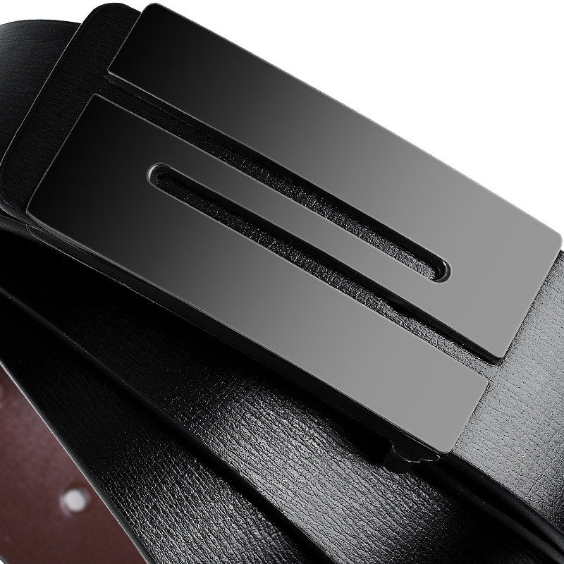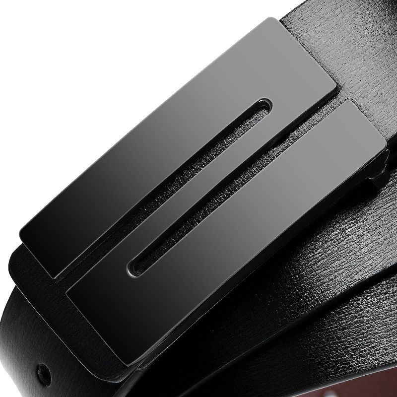 商务皮带男平滑扣真皮腰带牛皮韩版百搭板扣裤带年轻人男士结实