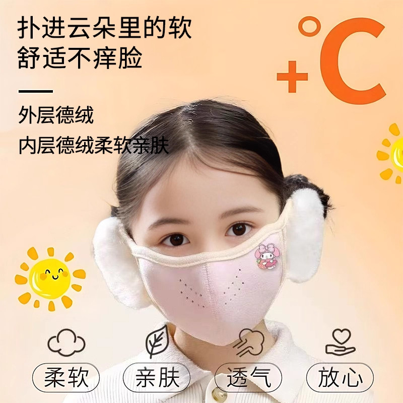 儿童保暖口罩耳罩一体男女童上学防风透气护耳秋冬防尘面罩可水洗