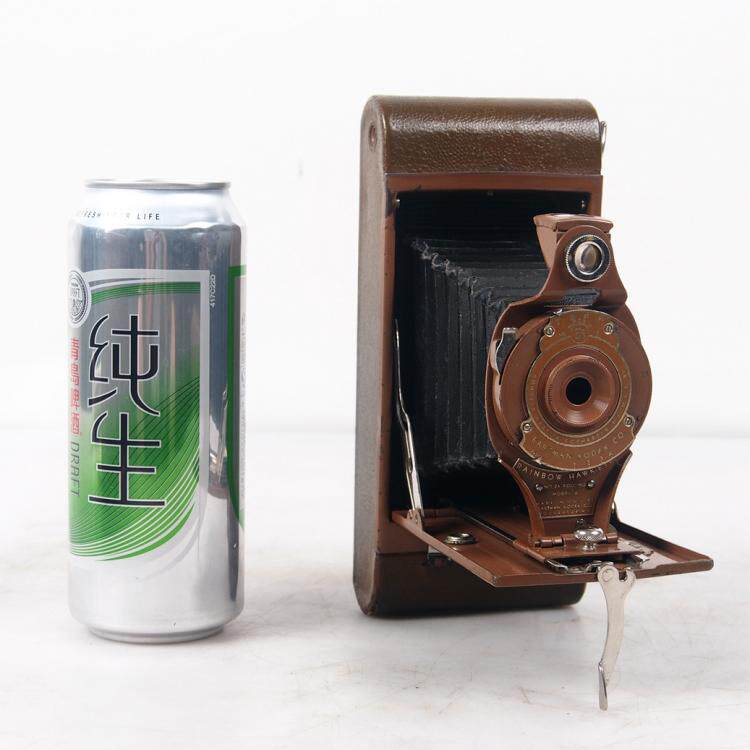 古董柯达RAINBOW HAWK-EYE No2A Model B 皮腔 折叠相机快门工作