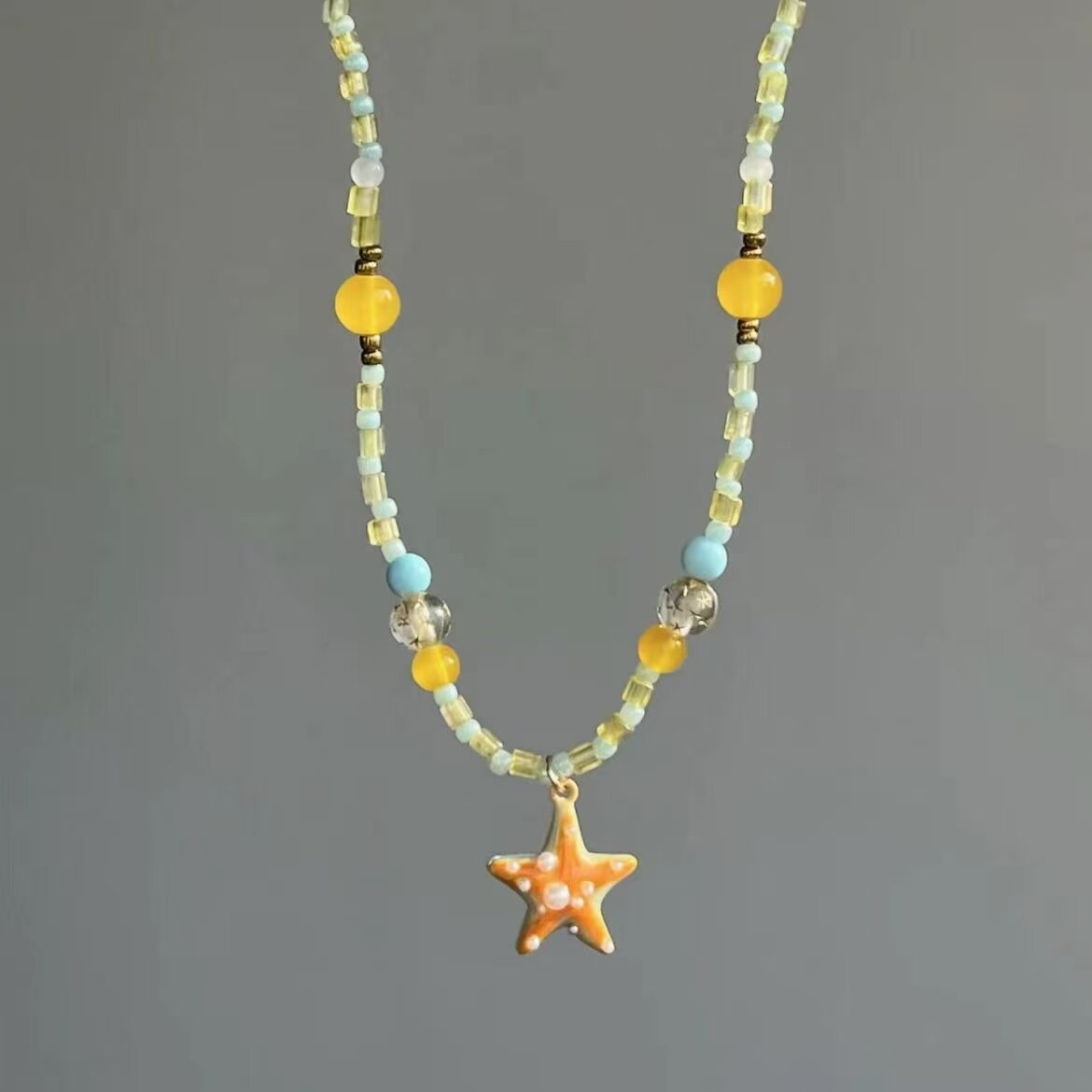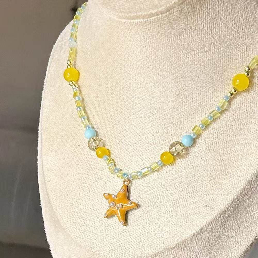 甜美多巴胺橘子海星项链女海边度假风星星串珠锁骨链夏日清新颈链