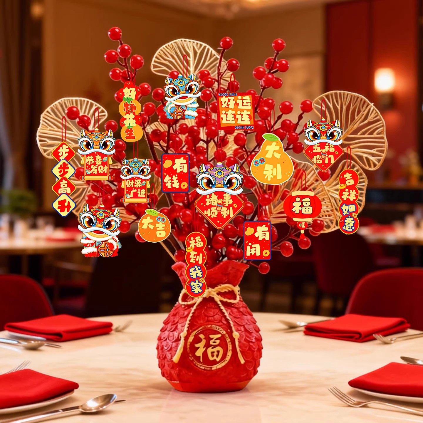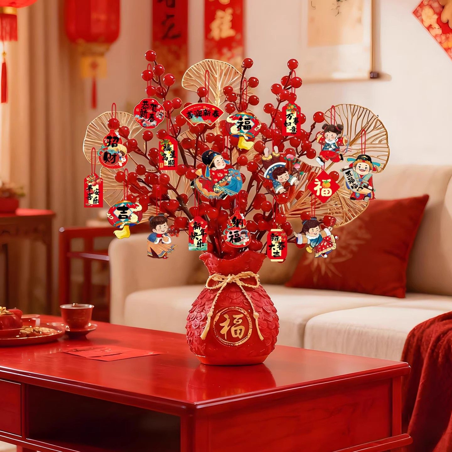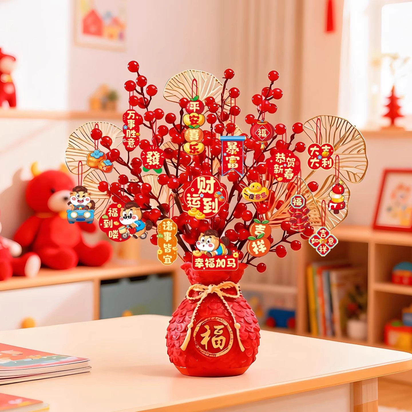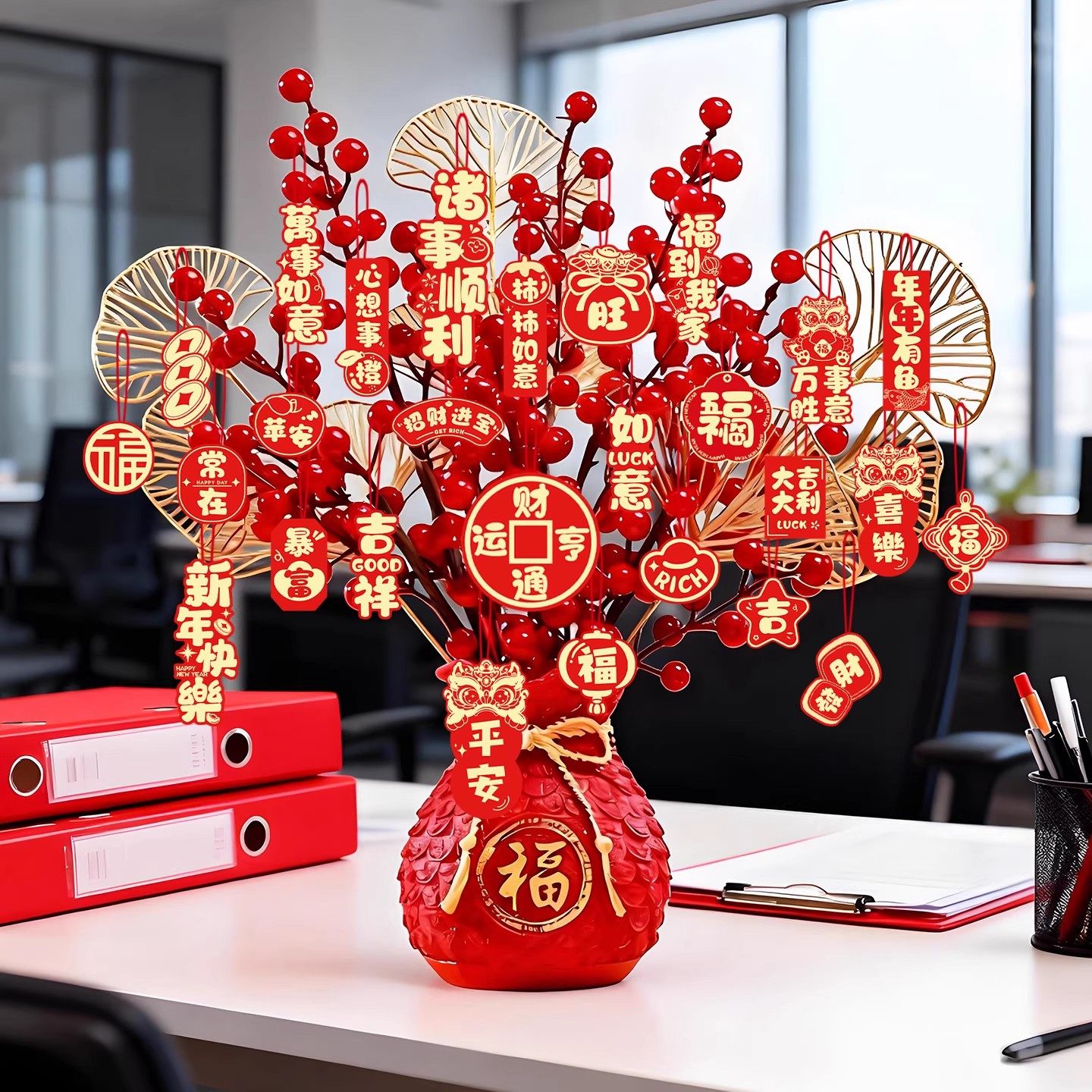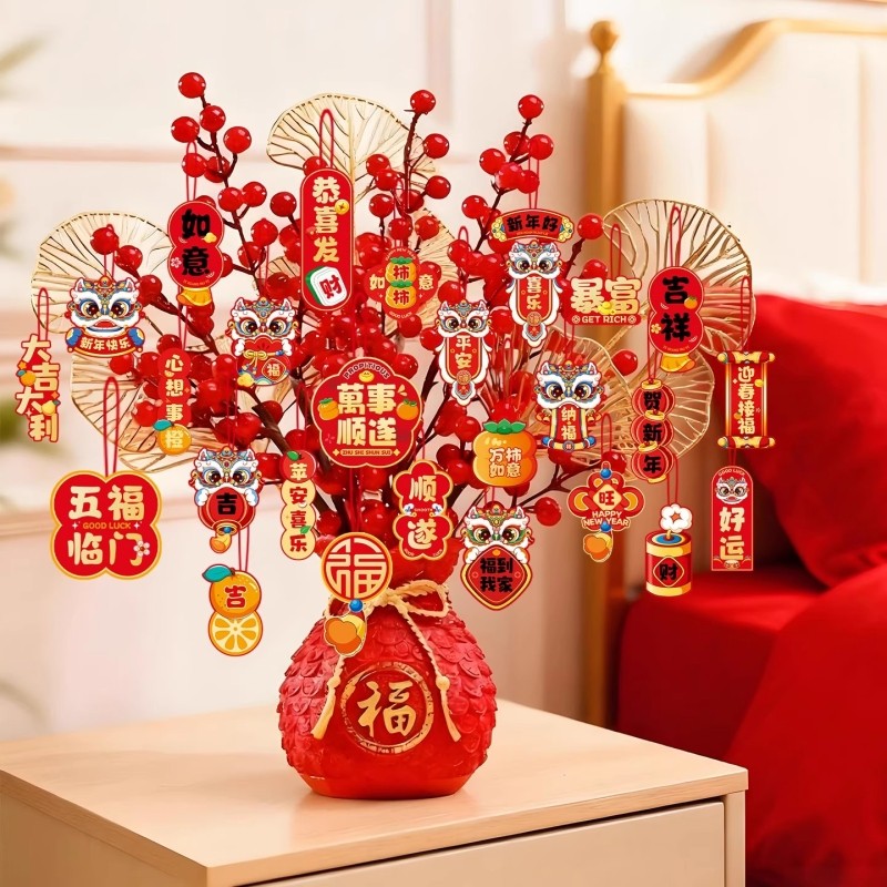 新年福袋摆件马年客厅装饰春节过年挂件挂饰盆栽2026商场前台福字