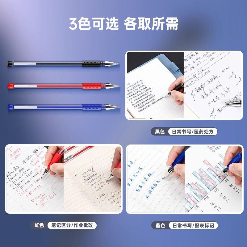 晨光按动中性笔黑色笔速干顺滑高颜值红蓝碳素笔考试办公用签字笔