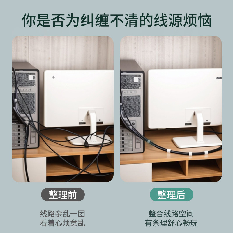 理线器数据线收纳神器桌面电脑束线魔术贴扎带电线网线走线固定器