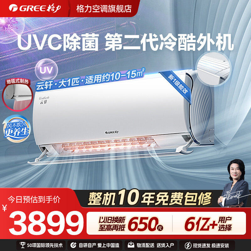 【Gree/格力官方】新一级大1匹变频冷暖家用健康除菌空调挂机云轩