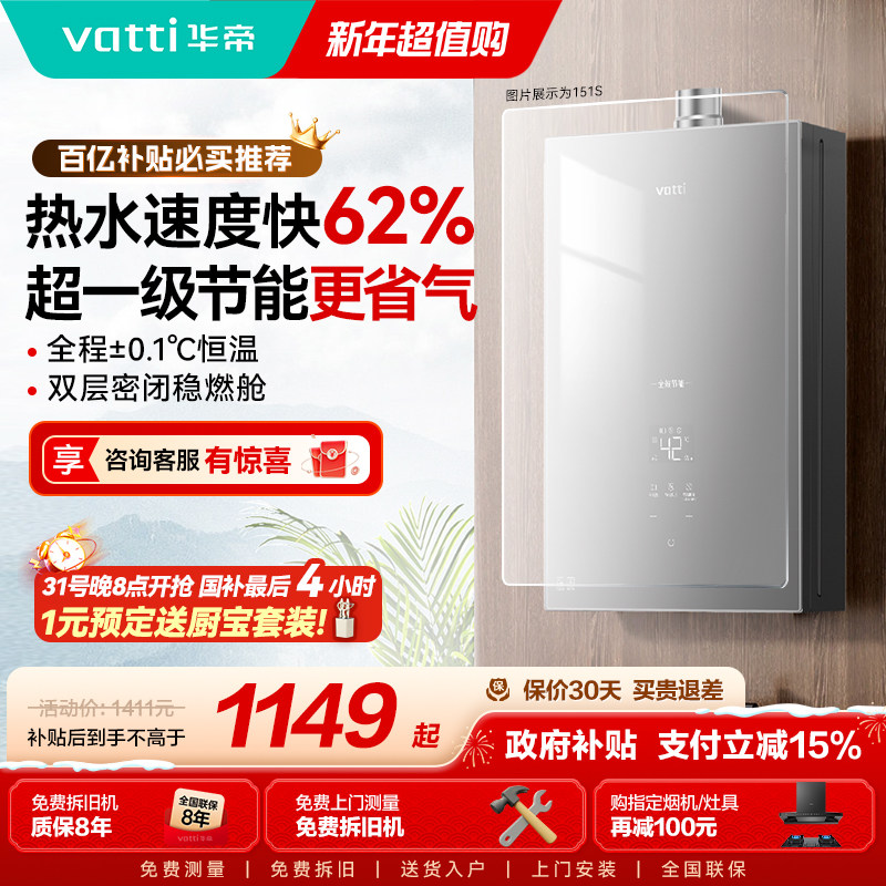[政府补贴]华帝燃气热水器恒温水伺服家用天然气16升节能i12151S