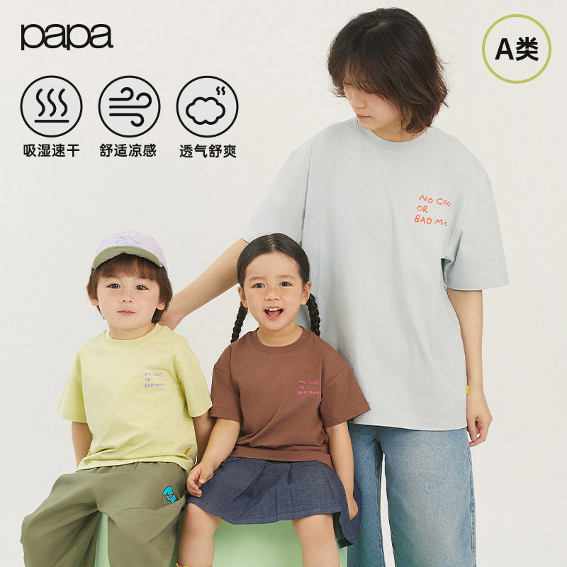 papa爬爬夏儿童亲子装T恤男女童凉感透气一家三口情绪短袖