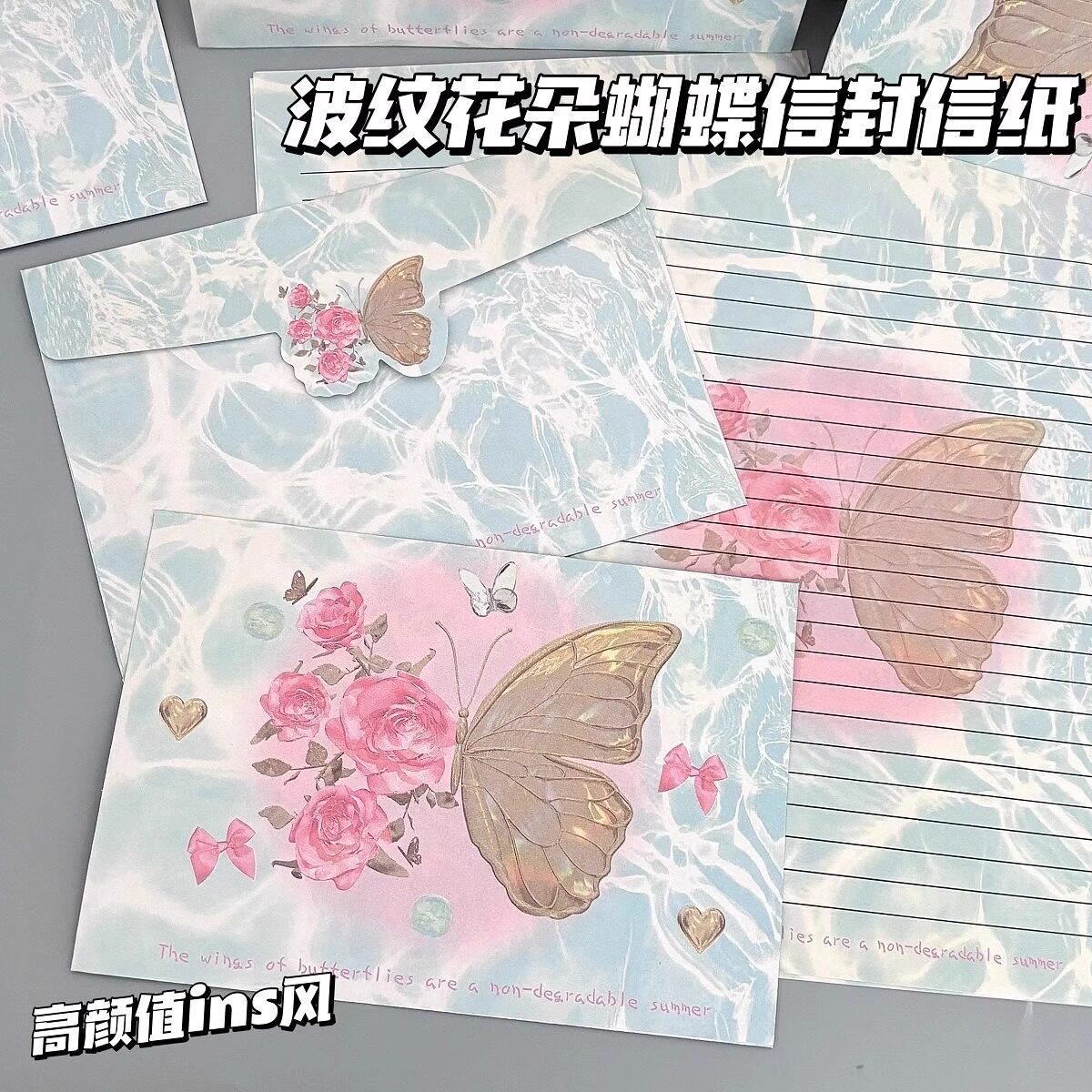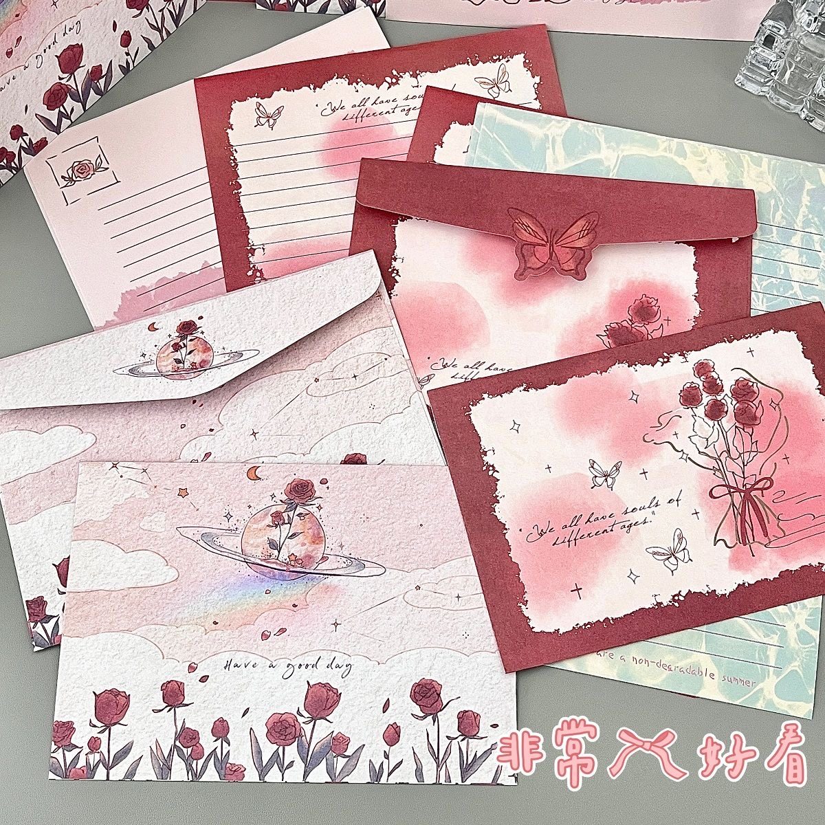 新款复古ins插画信纸祝福创意贺卡浪漫礼物信笺手写玫瑰信封套装
