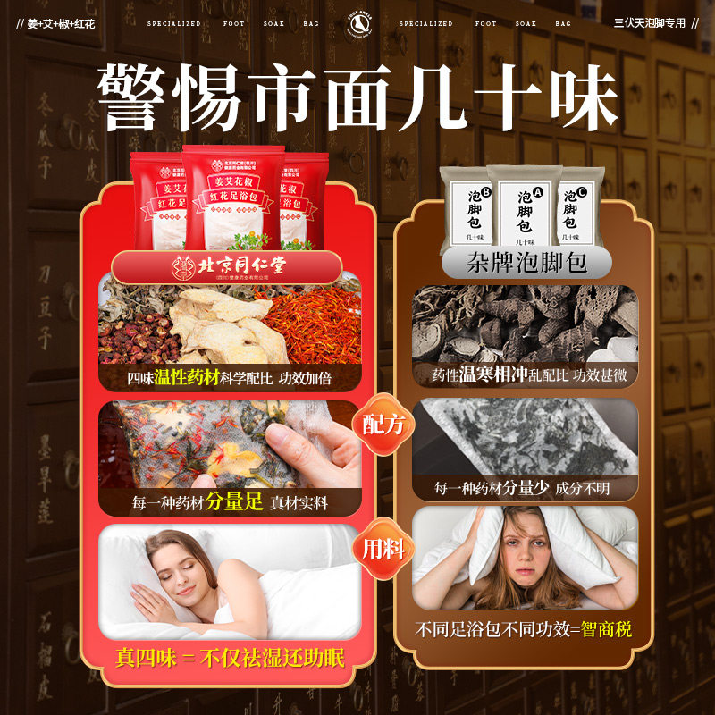 同仁堂泡脚药包花椒艾叶生姜去湿气排毒助睡眠祛湿红花男女足浴包