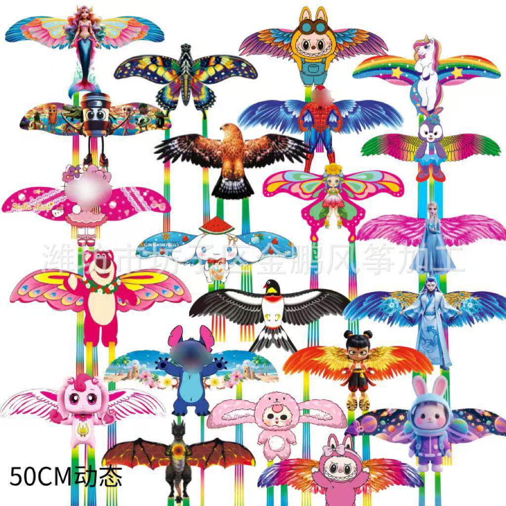 潍坊风筝新款动态鱼竿风筝手持仿真户外儿童卡通塑料翅膀动漫
