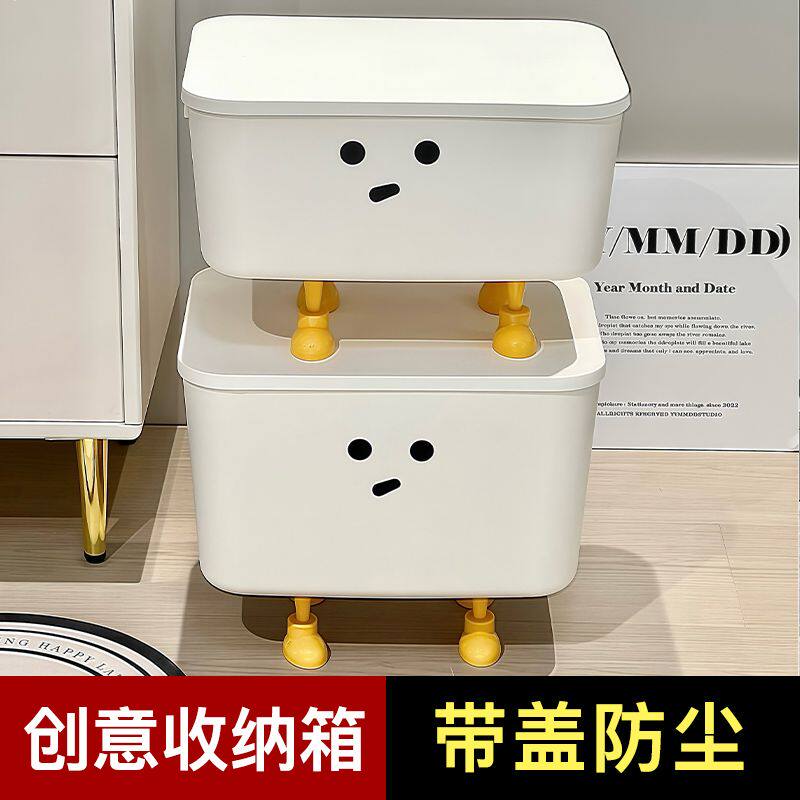 桌面收纳盒奶油风客厅零食玩具化妆品置物篮厨房杂物带盖储物箱子