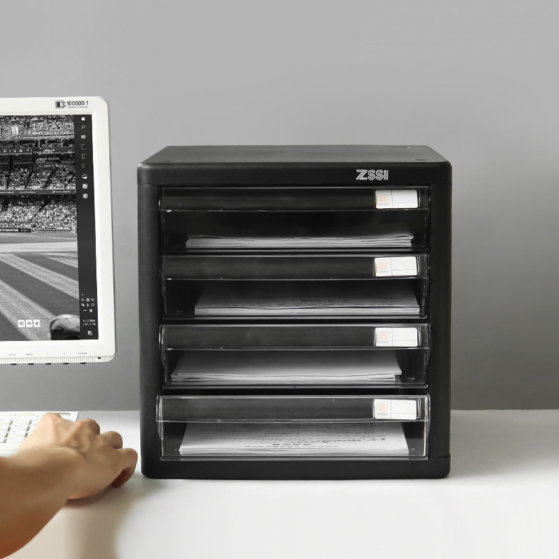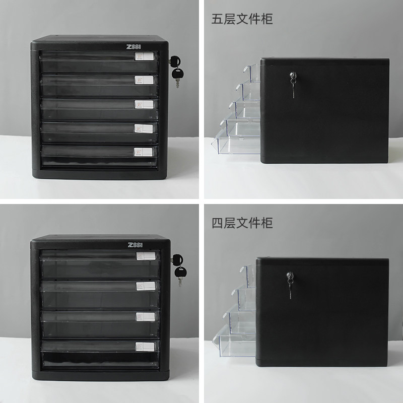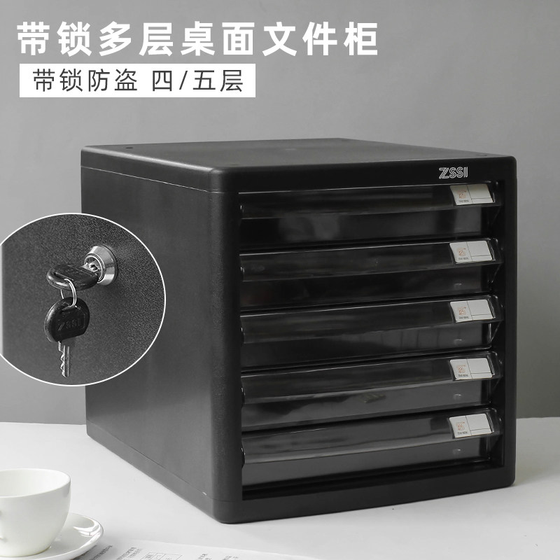 简约带锁桌面文件柜五层塑料抽屉a4资料收纳学生办公整理柜文件盒
