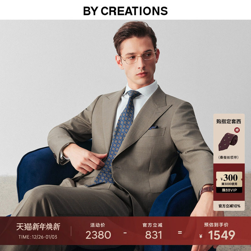 柏品高支纯羊毛商务西服套装男修身半麻衬正装职业新郎结婚礼西装
