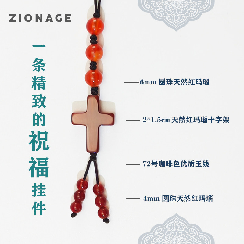 ZIONAGE 天果红玛瑙十字架挂件伴手礼手机挂绳车钥匙挂链团购礼物
