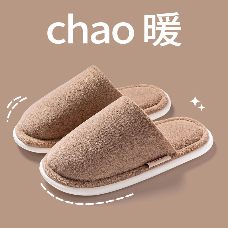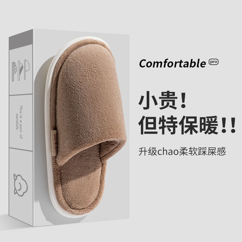日式男冬季棉拖鞋毛毛加绒保暖室内家用家居情侣静音男女软底防滑