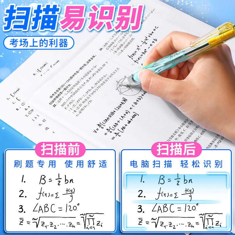 得力刷题笔速干st头透明考试笔考研考公学生用文具黑色0.5刷题备考专用笔中高考高颜中性笔碳素考按动式透明