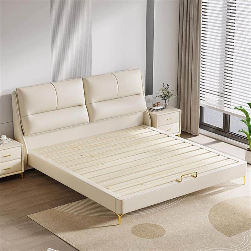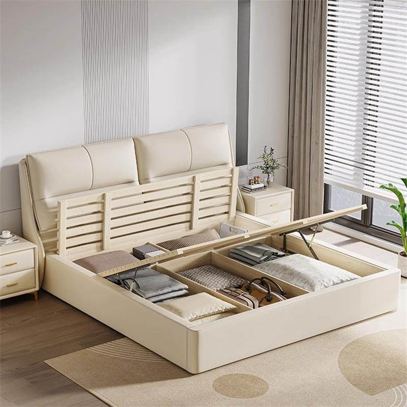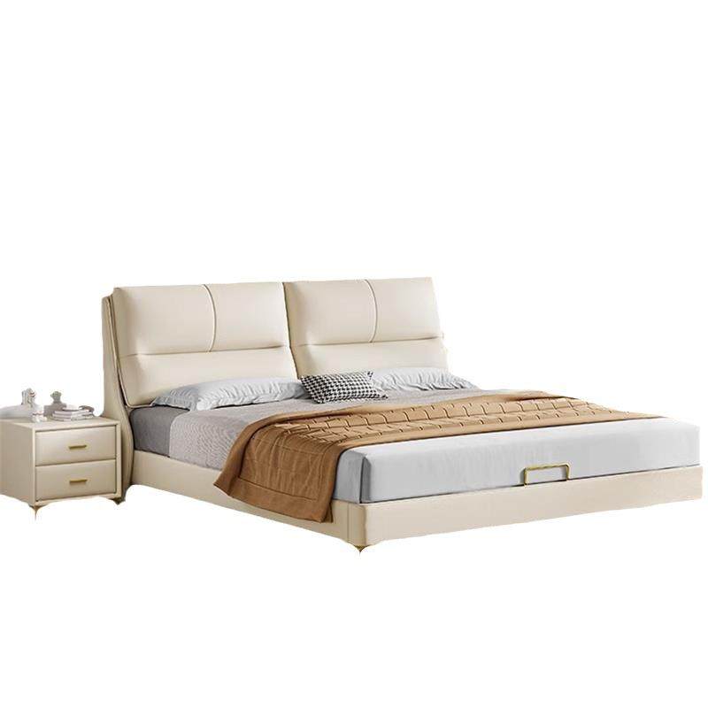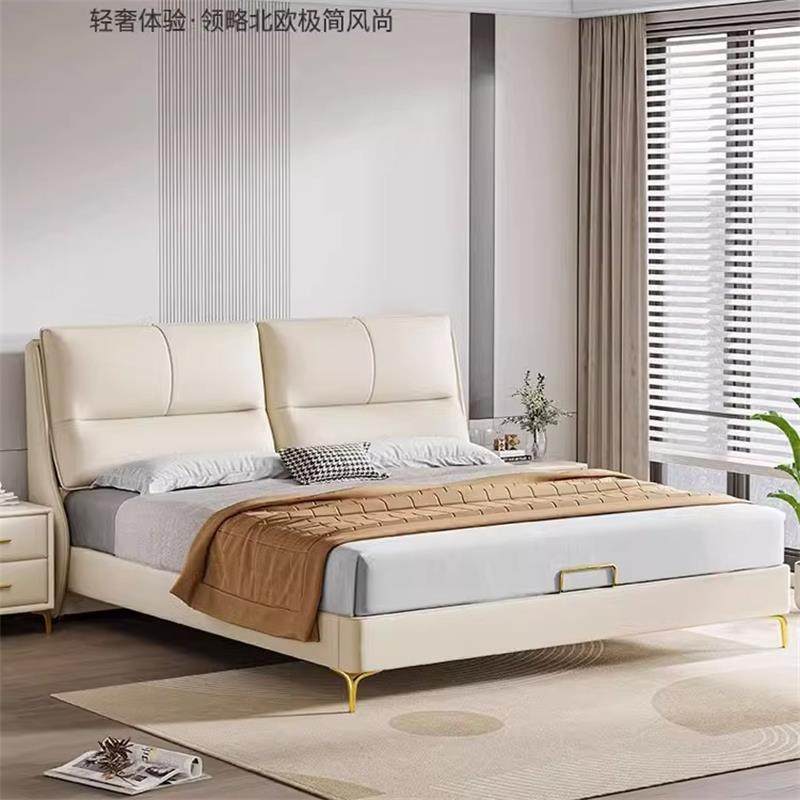 意式极简真皮床现代简约卧室双人床1.8米皮艺床主卧储物软包婚床