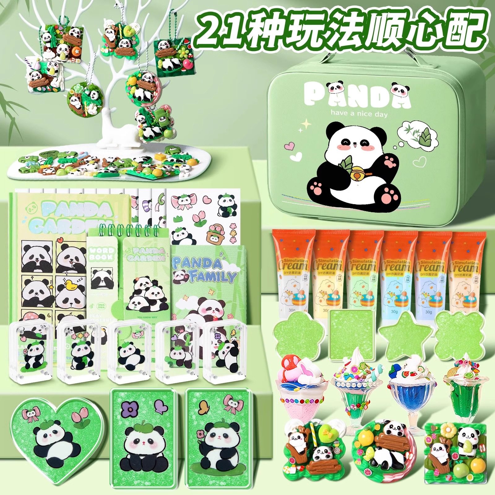 熊猫咕卡套装女孩豪华版奶油胶冰淇淋玩具手帐账贴纸儿童手工diy材料流沙咕咔盘骨酷卡砖过新年礼盒生日礼物