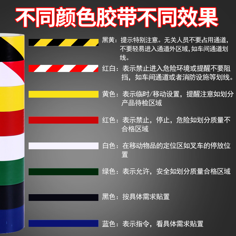 PVC胶带新款黑黄色警戒贴地彩色斑马标识地面地板工厂划线胶带可定制ESD防静电胶带防水防嗮