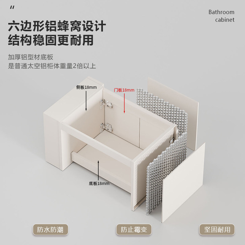加厚蜂窝铝小户型浴室柜一体陶瓷洗手盆卫生间防水洗脸盆柜组合