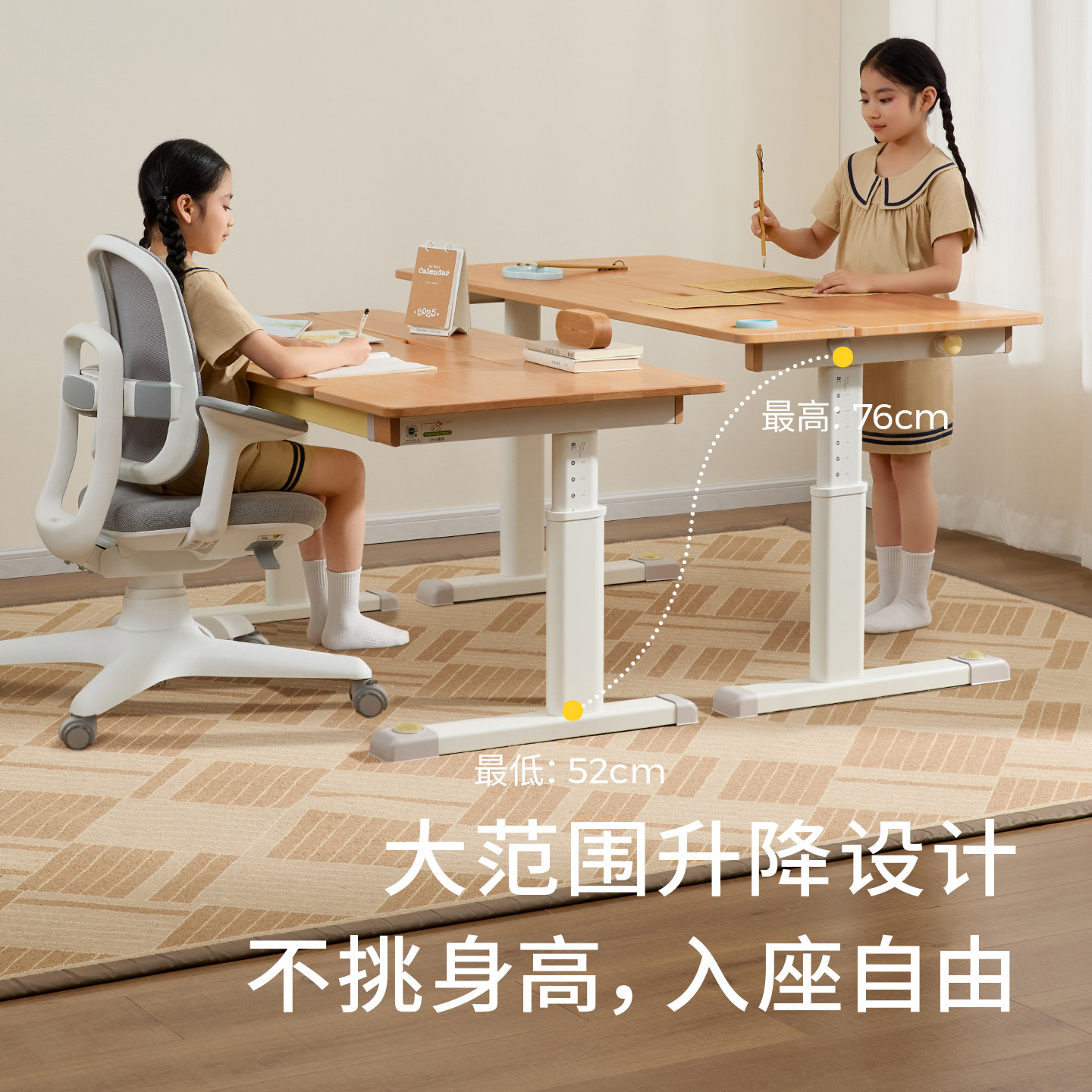 2平米学习桌实木儿童书桌写字桌椅套装小学生家用可升降领航员S