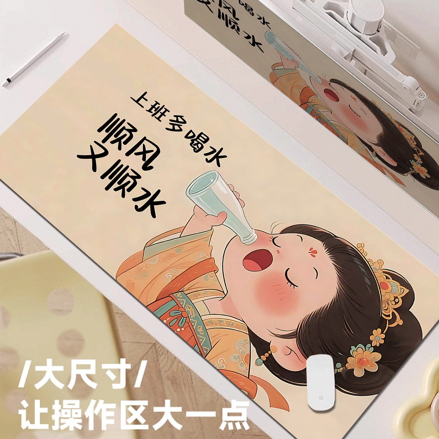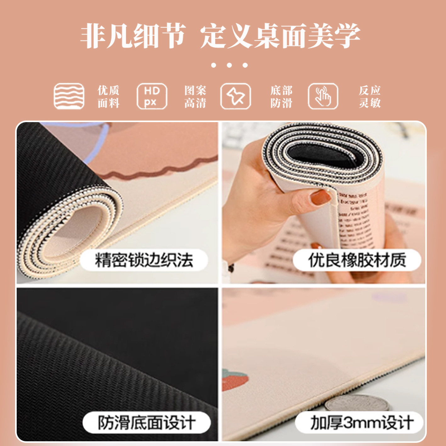 卡通文字鼠标垫超大号女生高颜值办公室电脑工位键盘书桌垫子定制