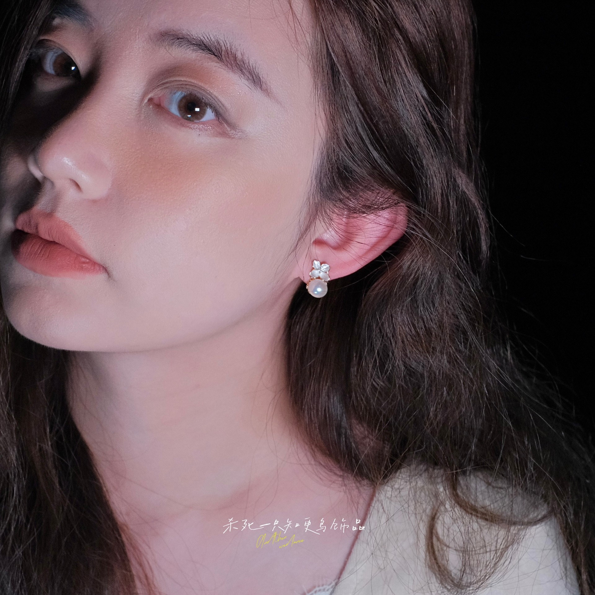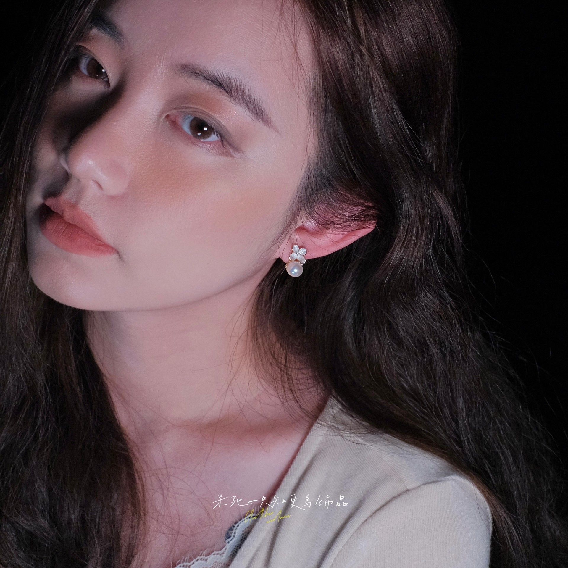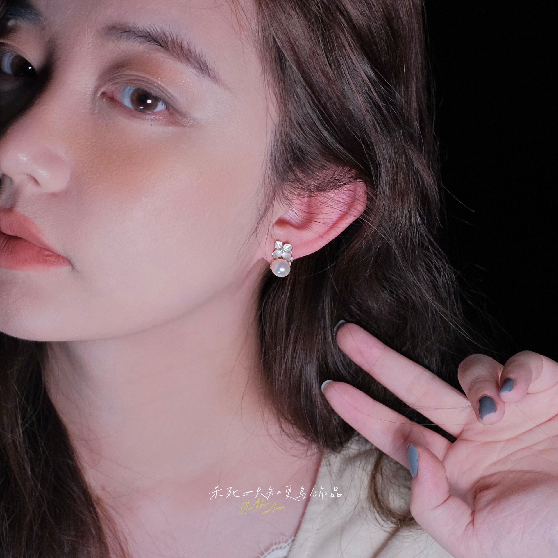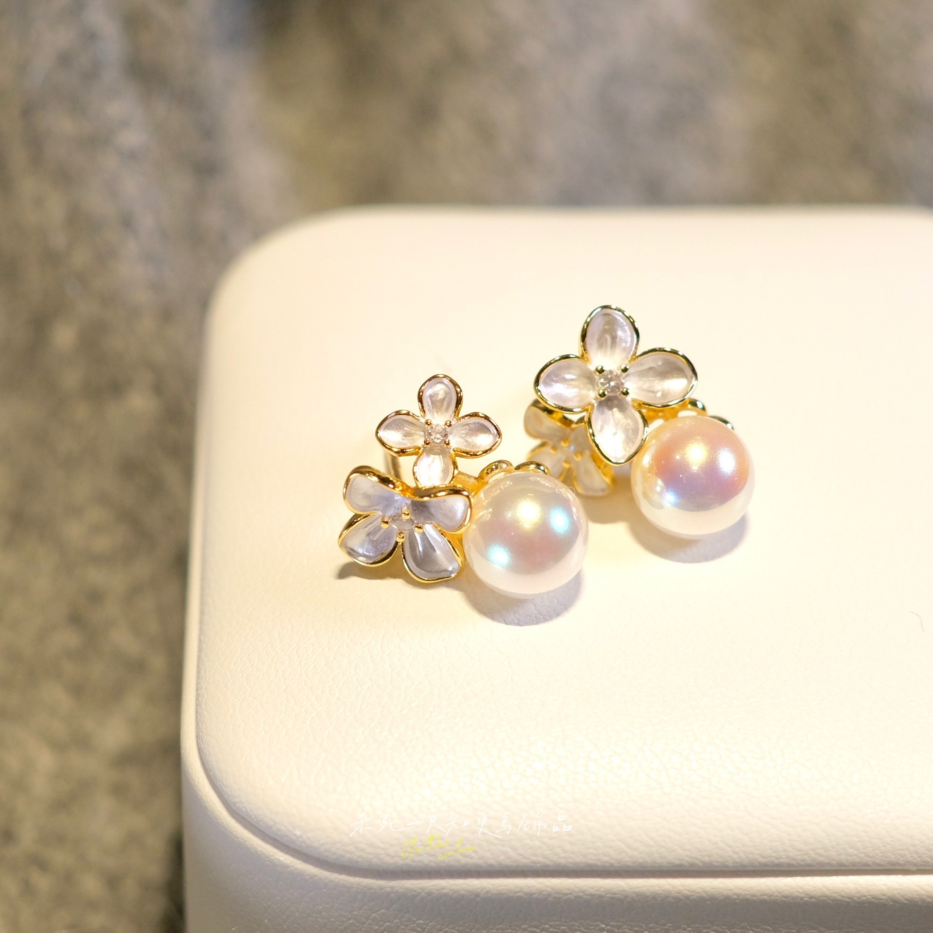 《花朝节》春夏温柔珐琅釉白色花朵粉光珍珠简约气质轻奢耳钉耳环