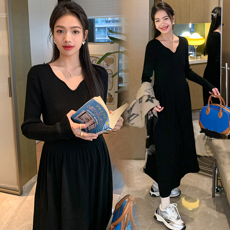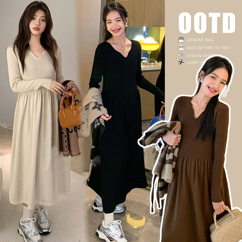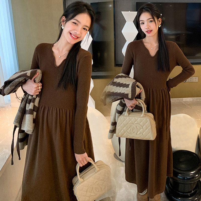 婧麒孕妇装连衣裙秋冬孕期新款内搭毛衣裙冬装气质孕妈针织长裙子